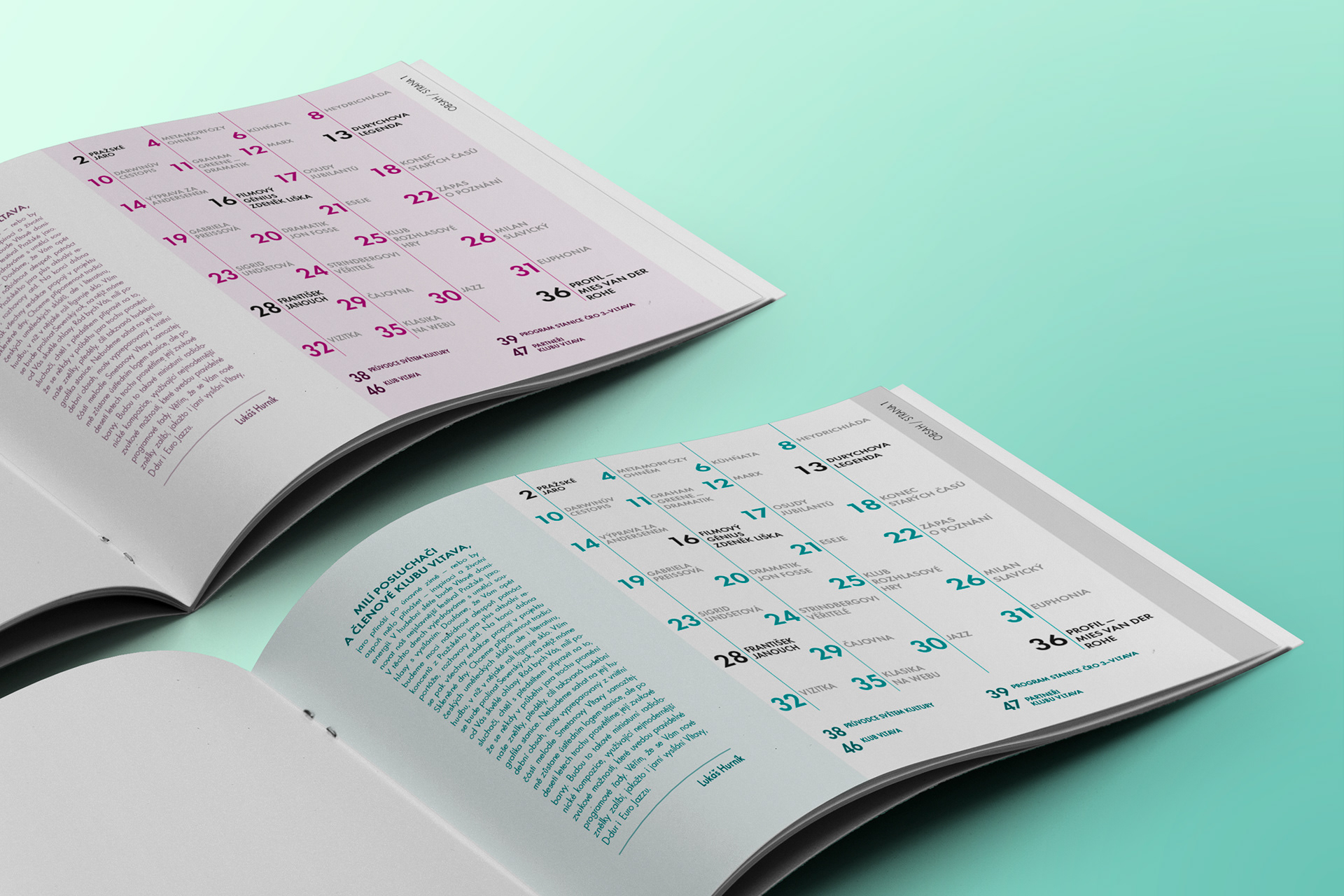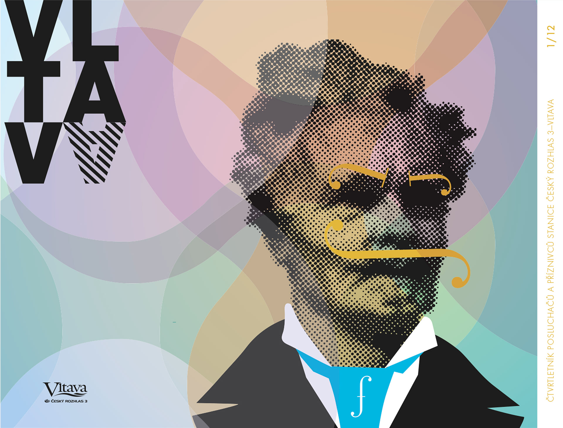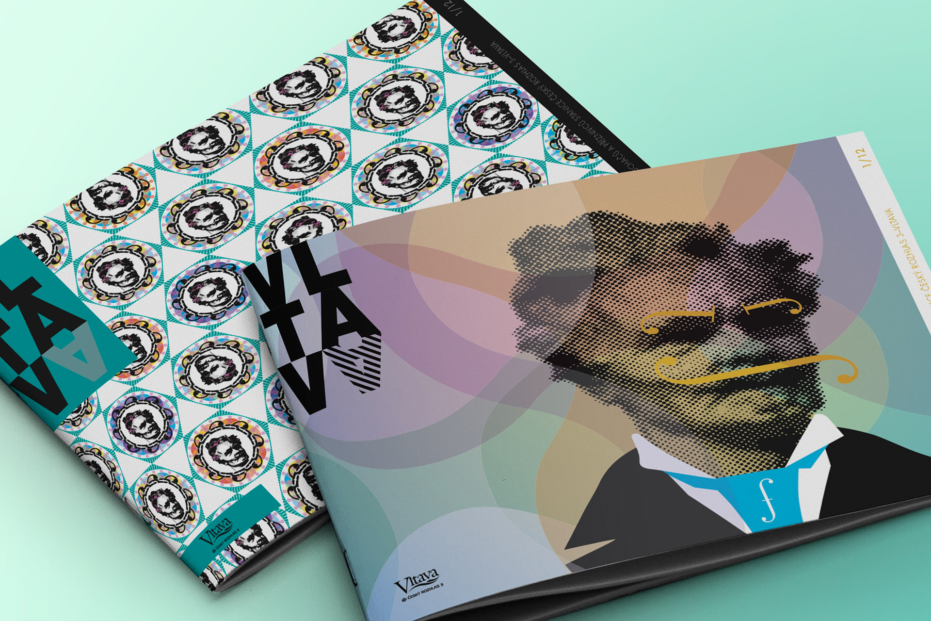 Grafické návrhy obálky a vnitřních listů čtvrtletníku VLTAVA pro Český rozhlas.